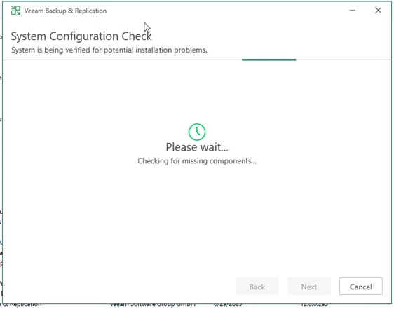 Once the VM is rebooted and online, Start the VBR setup again, Accept the agreement -> License details -> Perform Configuration Check