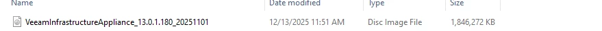 - The OVA deployment of the Veeam Software Appliance is offered for VMware environments, for other supported hypervisors, use the ISO deployment matching the system requirements: Veeam Backup & Replication 13 Release Notes