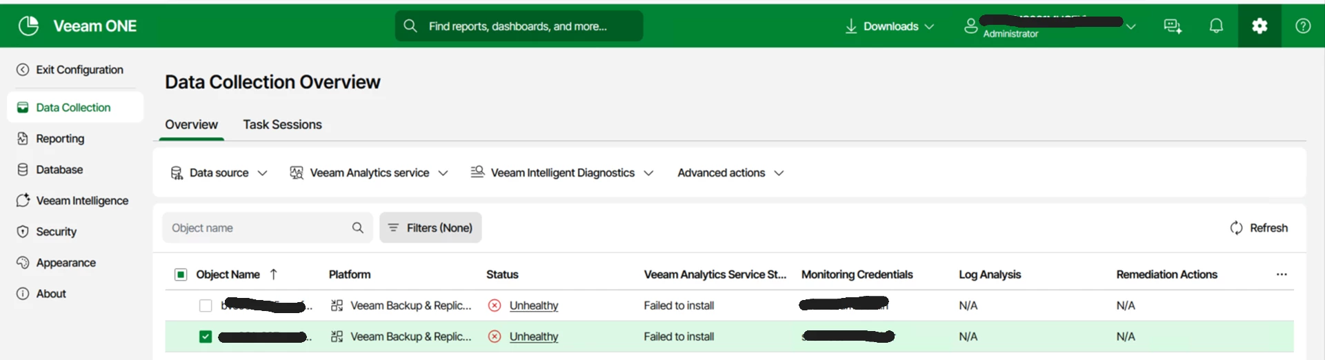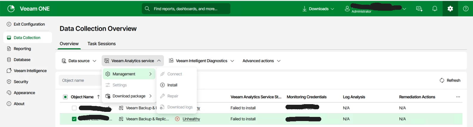 So during adding VBR into Veeam ONE, Veeam Analytics Service (previously Veeam Agent) was installed, but connection timed out.