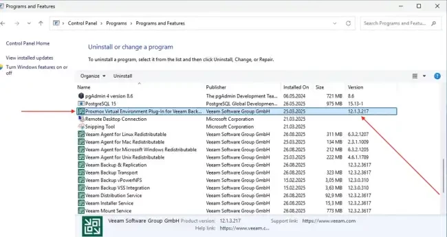 As you can see below, this meets the requirement for the Veeam Plug-in for Proxmox VE build 12.1.3.217 which can be determined via the steps below.