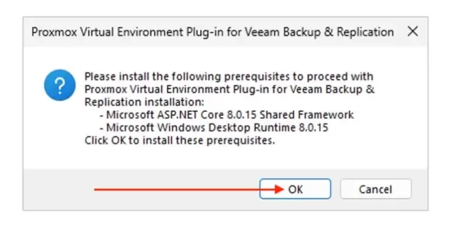 When some prerequisites are missing, you will be prompted to install them by clicking on OK.