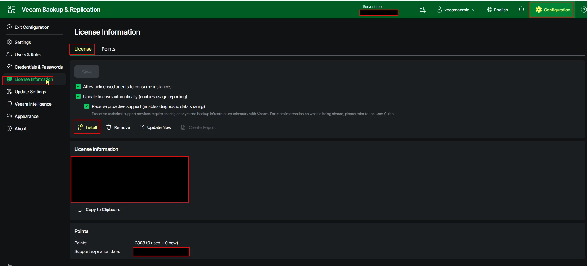 - Go to the VSA Web console --> Configuration --> Licence Information ---> Install