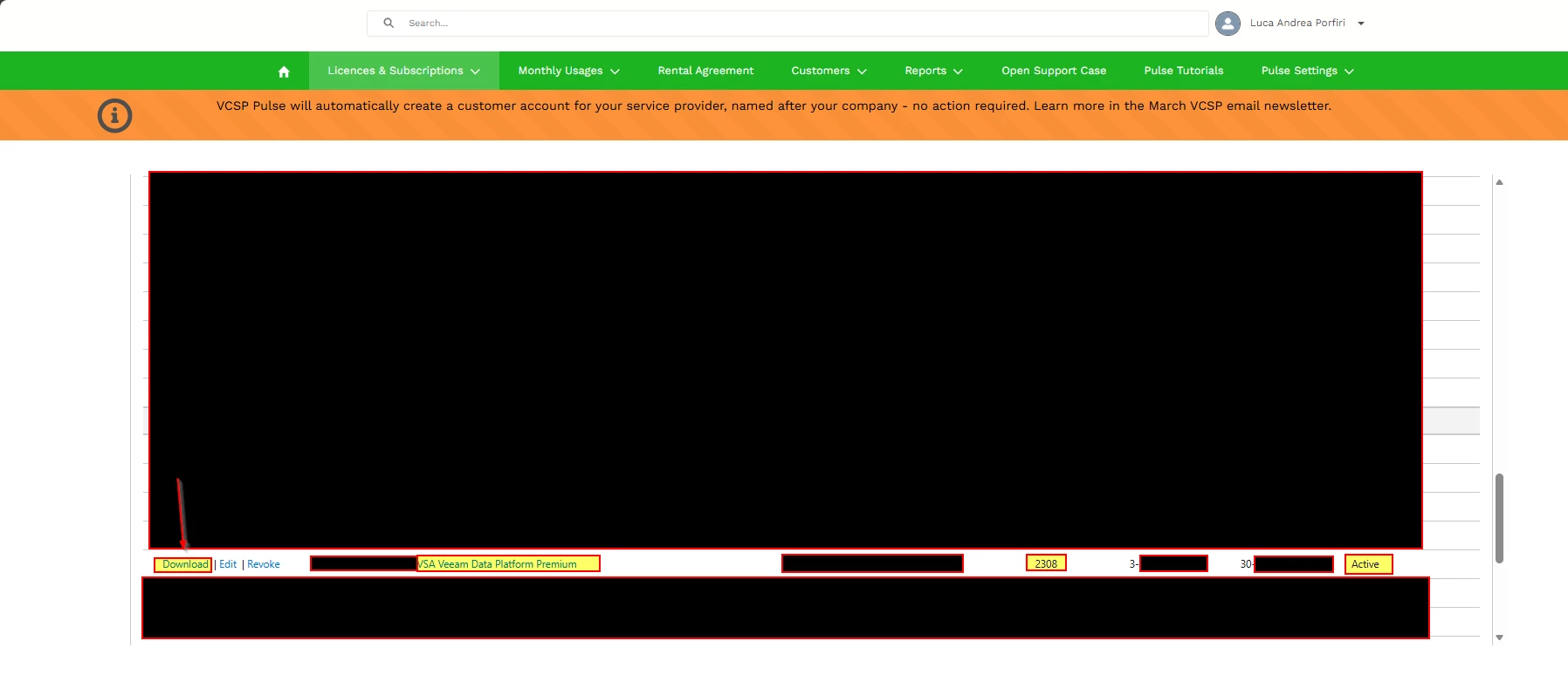 - You will return to the ‘Licence & Subscription’ screen. Locate your new licence, download it, and install it.