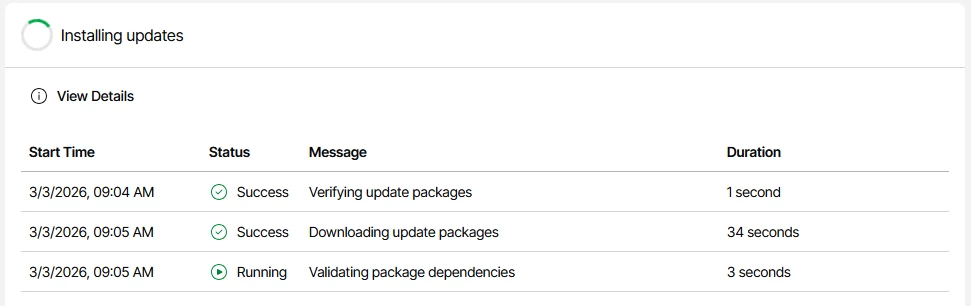 - It will proceed with the installation of the licences and immediately scan for updates.