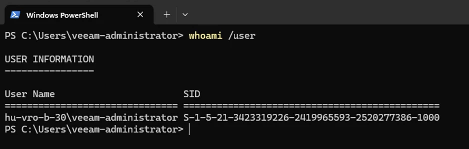 Via whoami /user in PowerShell, the corresponding SID of the user can be read.