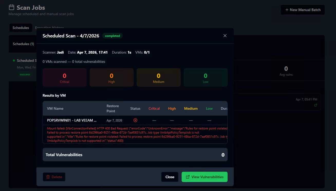 I'm really happy to share with the Veeam Community the release of vScan 2.0, a complete rebuild of the vulnerability scanner for Veeam Backup & Replication.