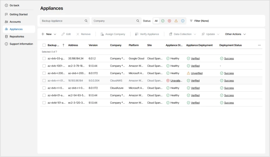 Gain full visibility and control over Veeam appliances deployed in hosted environments, including health, licensing, and updates. As Veeam expands its software appliances for workloads like Microsoft 365 and cloud platforms, v9 unifies management under a single Console dashboard.