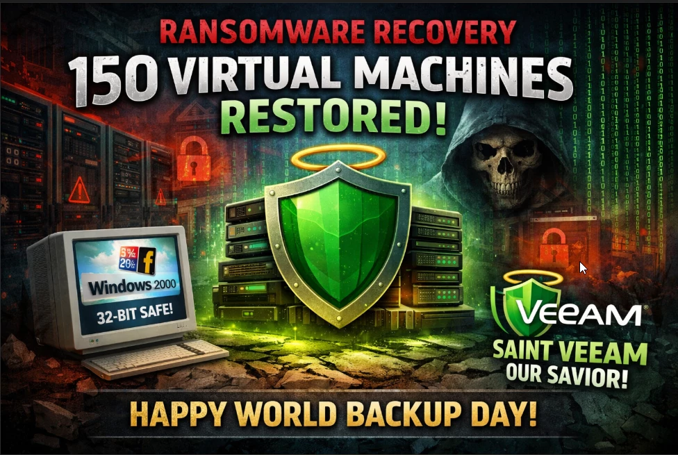 Using Veeam as the backup platform, we initiated a coordinated recovery effort. The restores were executed methodically, prioritizing critical services and dependencies.