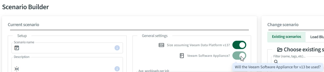 I would like to perform a V13 sizing with Windows VBR for my customer. After activating V13 in Veeam Scenario Builder, “Veeam Software Appliance” cannot be deselected.