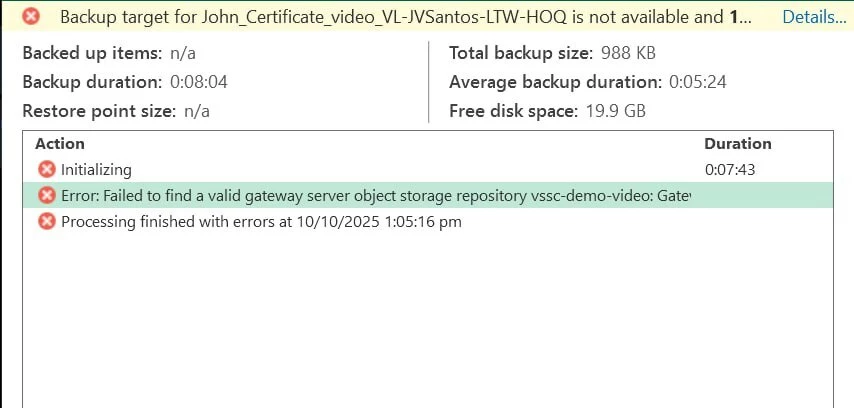 I’m trying to backup one of our “workstation” but I am experiencing this error in our VSPC, why is that ?