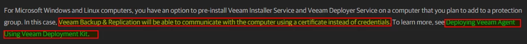 Deployment kit by default contains a certificate of validity 1 month. Does the agent (transport service etc.) stop working after that? How do we manage those certs as we generally do not do many agent-based backups but want to be able to do FLR to original destination nevertheless.