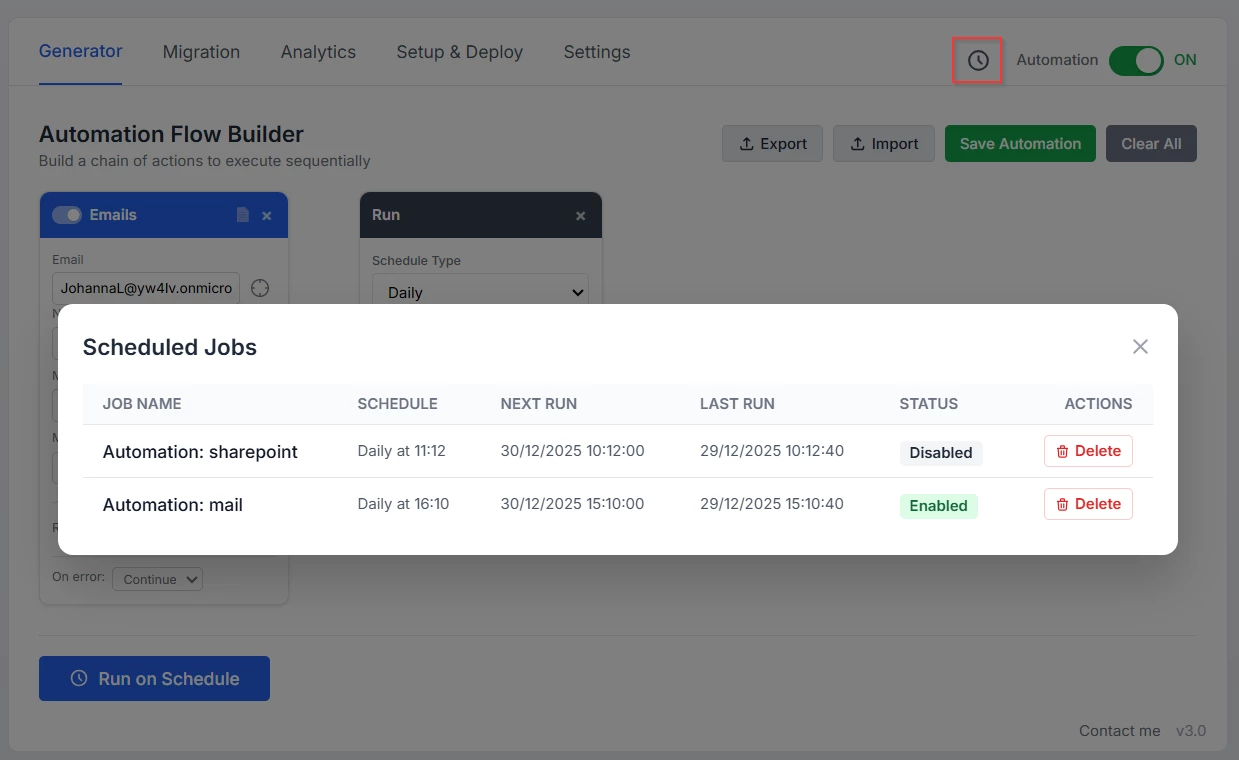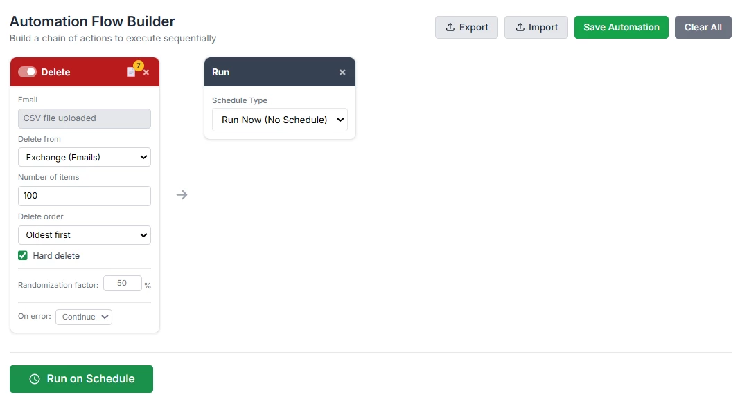 - Job scheduling: the tool now includes a built-in scheduler that can run your automation flow jobs at whatever intervals you choose. It’s a great way to bring some activity to an email account, just like in real life, by receiving a batch of new emails every day.