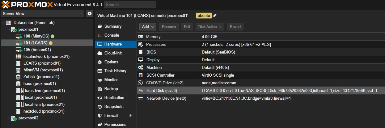 I find this odd since the storage type on the successful backup is the same as the other VM’s I am running, (Three Ubuntu VM’s & Home Assistant OS).