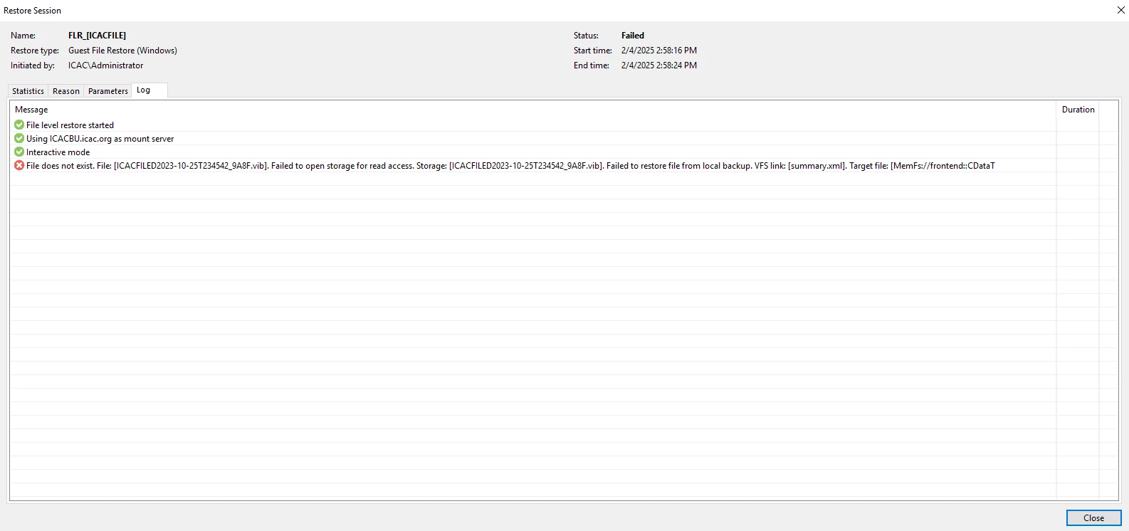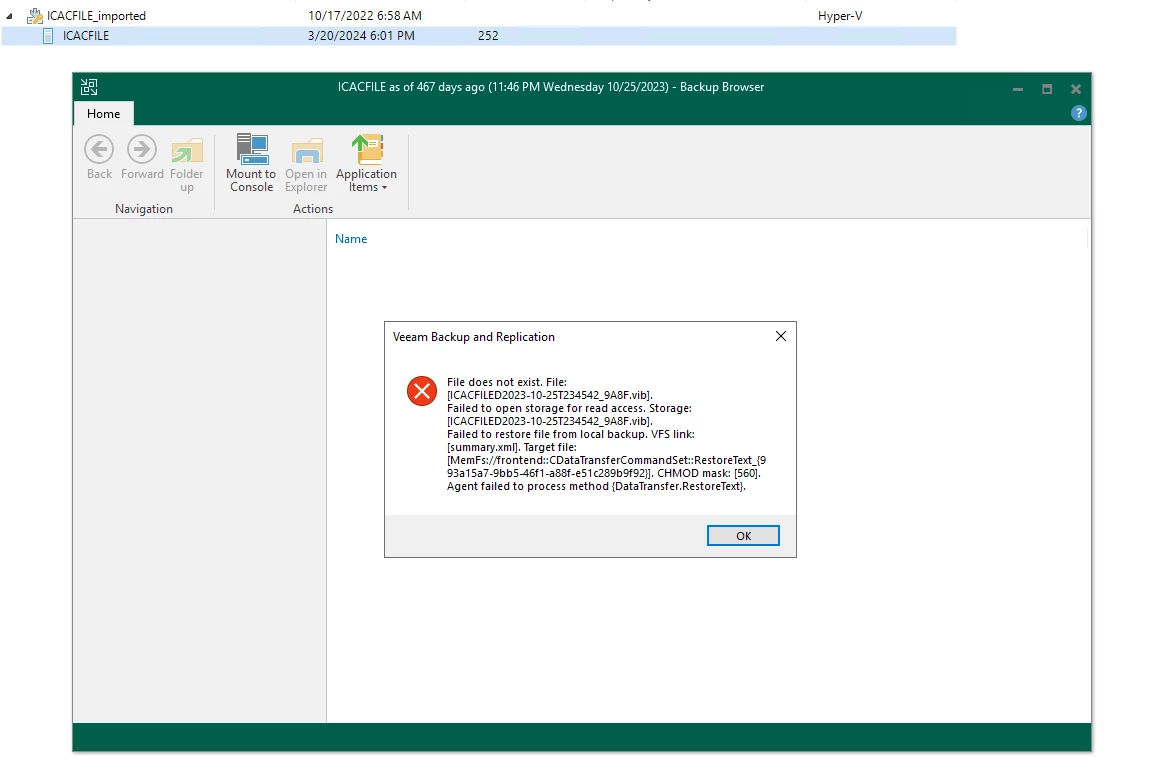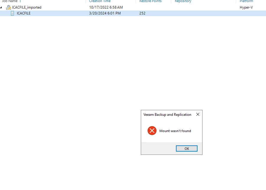I am looking to recover some files of interest that were backed up to tape over a year ago. The files were on a Hyper V VM running windows server. The files were part of a backup job that was run on VEEAM at that time. I obtained the tapes and imported the entire tape job to our backup server, which is a 5 tape media set around 50 TB. When I attempt to "Restore guest files" from the imported tape, I get an error message that some of the files are missing and then get the following errors, indicating that "Mount wasn't found". Of note, the previous backup/tape job was on a different domain that has been since decommissioned, so we are now running our backups under a new domain controller. Would the old domain be the mount it is looking for? I'm wondering if it is unable to mount because it is trying to do so on the old domain (which doesn't exist)? Of note, I utilized the same process in the past to recover files on tape with no issue, but that was on the previous domain. I apologize as I don't have formal or extensive VEEAM training/use and I am not an IT professional, but unfortunately I have been dealt the card to deal with our backup system on a computer forensics server. Any advice?