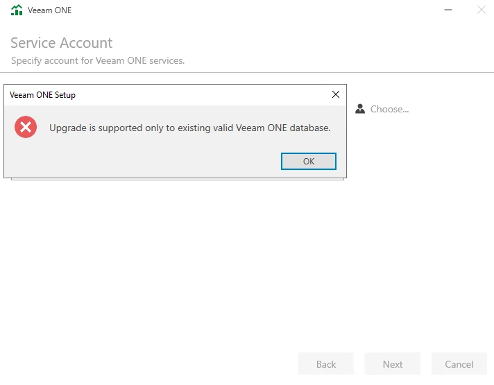 I assume your existing database version is too old for the new VONE version and is not supported. From which VONE version are you upgrading? Or you have deleted the old database before the upgrade.