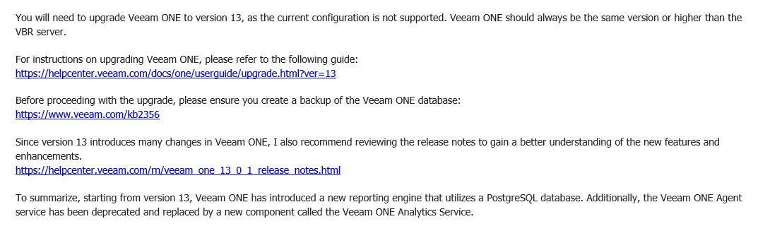 version conflict as VBR 13 and VONE 12.3 got confirmed by support.