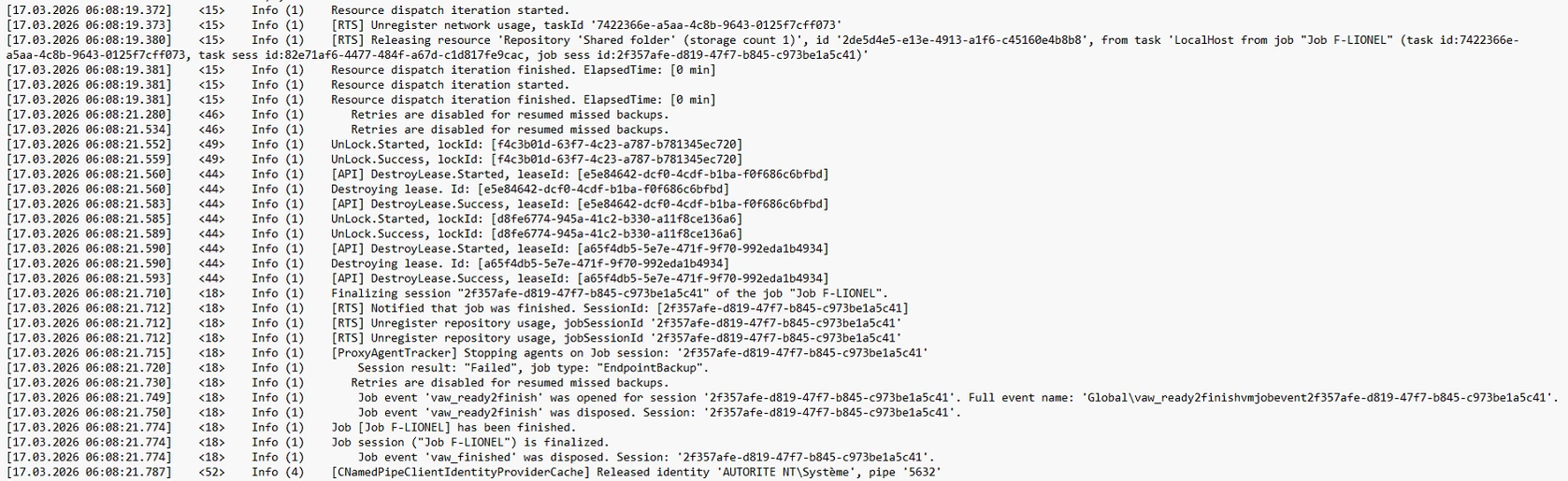 We also checked VSS earlier: writers are stable and the backup does not fail during snapshot creation, but later during finalization.