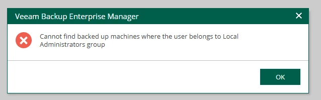 but when i logon using my account why i got error ‘Cannot find backed up machines where the user belongs to Local Administrators group’