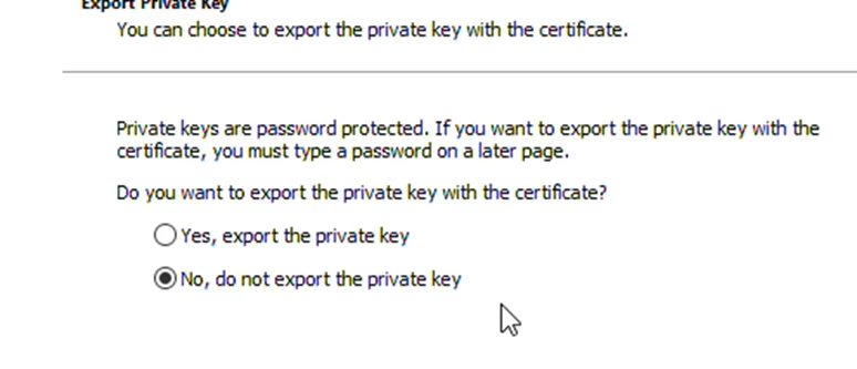 -> Export only the public part of the certificate by selecting NOT to export the private part: