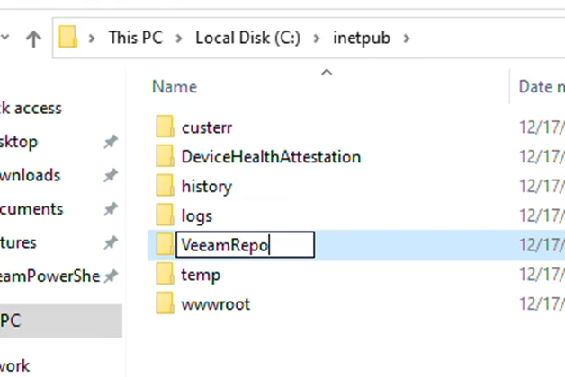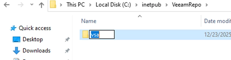 Now all you need is to unzip the content of the zip file to c:\inetpub\VeeamRepo\vsa\ and make sure two things: