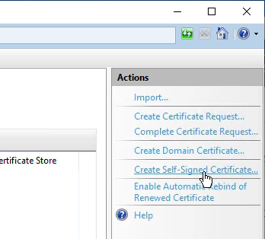 -> Click the Create Self-signed Certificate on the right-hand side: