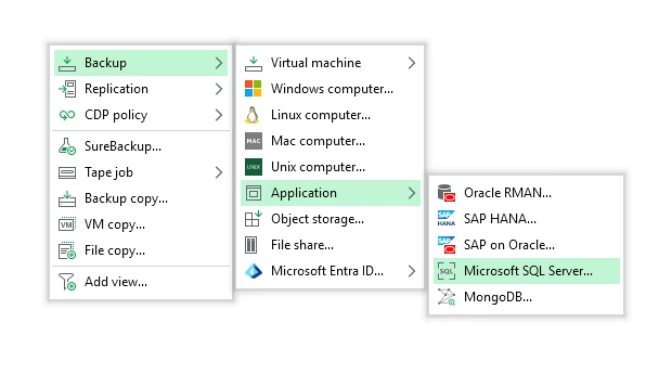 Hello all, we are looking into SQL Server backup options, we have done a full server and a volume backup also. We see there is a Backup>Application>SQL option, however we cannot see the SQL option in our console….any ideas as we can see Oracle and Mongo available. Thanks in adavance, Tony.