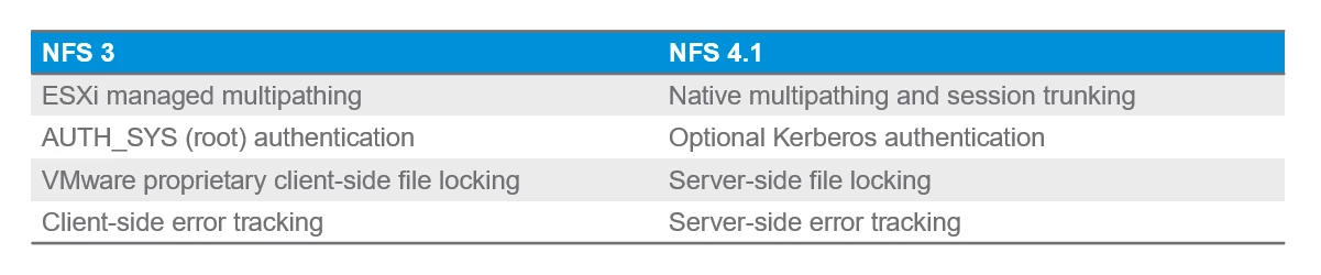 Here is a comparison between NFS versions 3 and 4.1 using ESXi version 7.