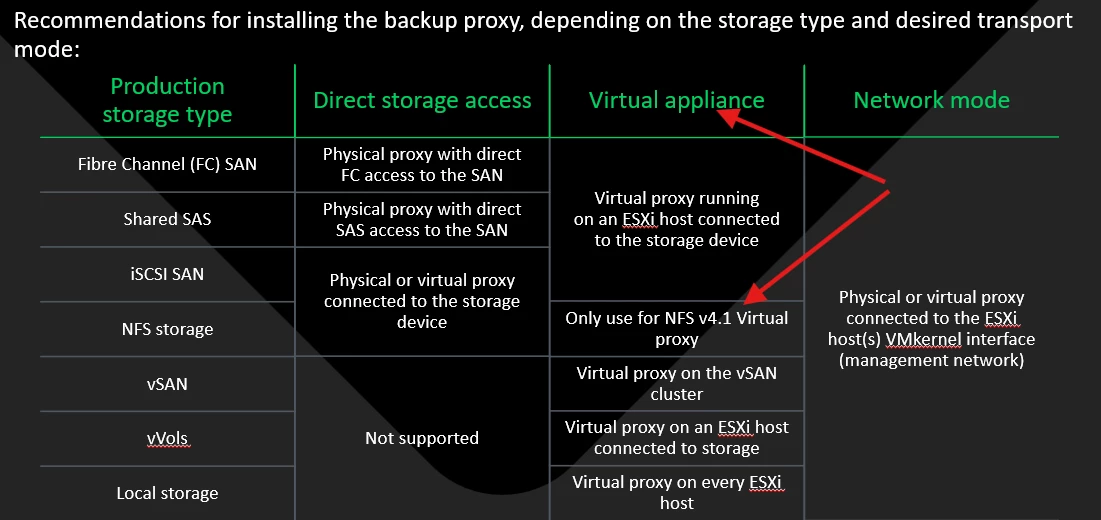Personally, I still recommend just skipping hotadd altogether though & just go with Direct NFS 😉 It tends to have a bit better performance. But, if hotadd is still what’s desired...for sure NFSv4.1 is the way to go. Appreciate the additional info Andre’. Looking fwd to catching up in PRG soon!