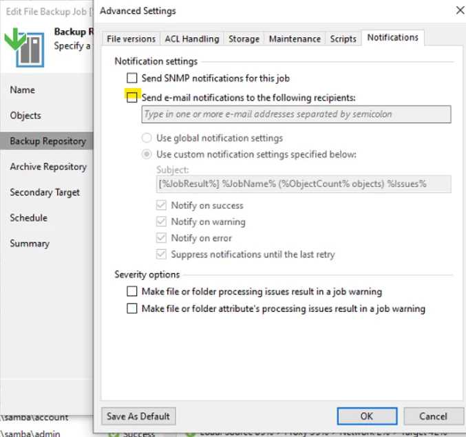 The window you screenshotted is only a “subsetting” from a specific job but you have global settings as well that will send email notifications.