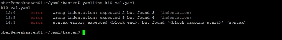 Now I will purposely break one of the indentations in the file and then run yamllint.