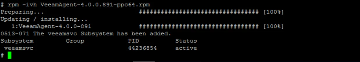 rpm -ivh VeeamAgent-4.0.0.891-ppc64.rpm
