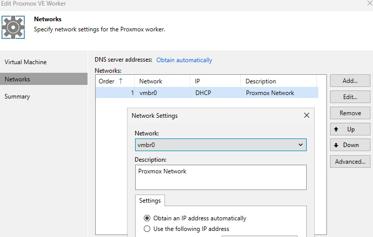 Ich versuche in unserem Proxmox Cluster den Worker zu installieren, in dem ich das aus der Veeam Console entsprechend starte.