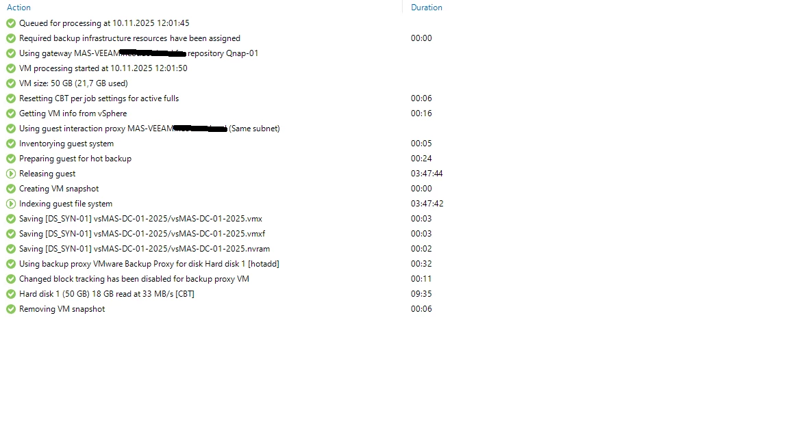 Veeam wird nicht fertig. Ich habe eine kleine Umgebung gebaut mit DC und ein bisschen Active Directory zum testen. Nun hängt Veeam ständig bei dem DC und wird bei 99% nicht fertig.