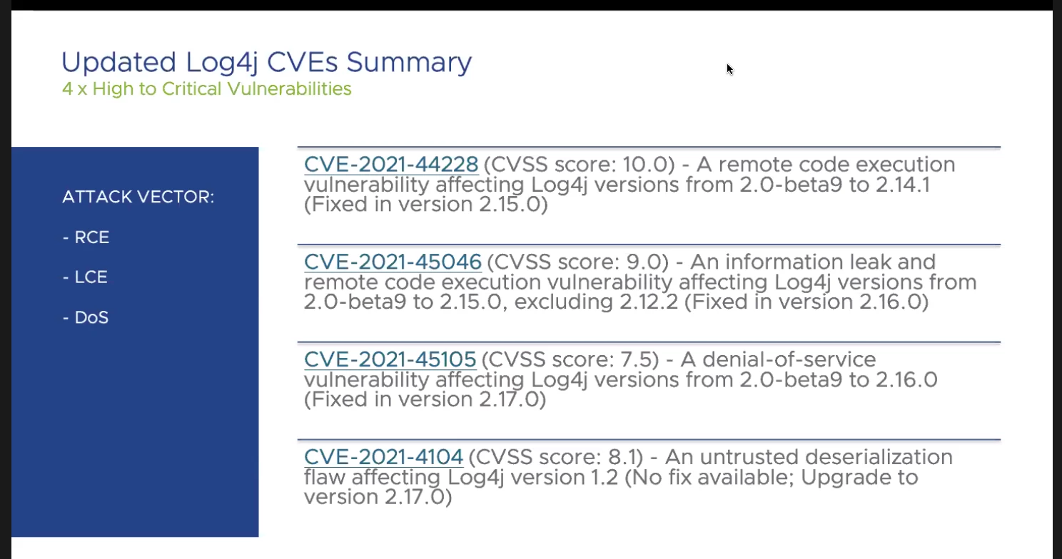 VMware Hong Kong will host a webinar tomorrow morning re the Log4j vulnerability. Please register if interested.