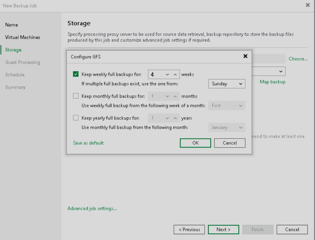 vorrei il vostro aiuto per poter creare dei Job di Backup per delle VM in vSphere, con retention 30 gg e faccia quanto segue: