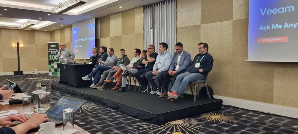 L’ultimo giorno al termine delle varie sessioni dedicate a Veeam Data Cloud, Veeam Service Provider Console e alla nuova formazione e certificazioni, ci siamo riuniti in plenaria per la fatidica sessione AMA (Ask Me Anything) in cui tutti i Responsabili delle varie divisioni di sviluppo Veeam si sono resi disponibili per rispondere ad ogni domanda.