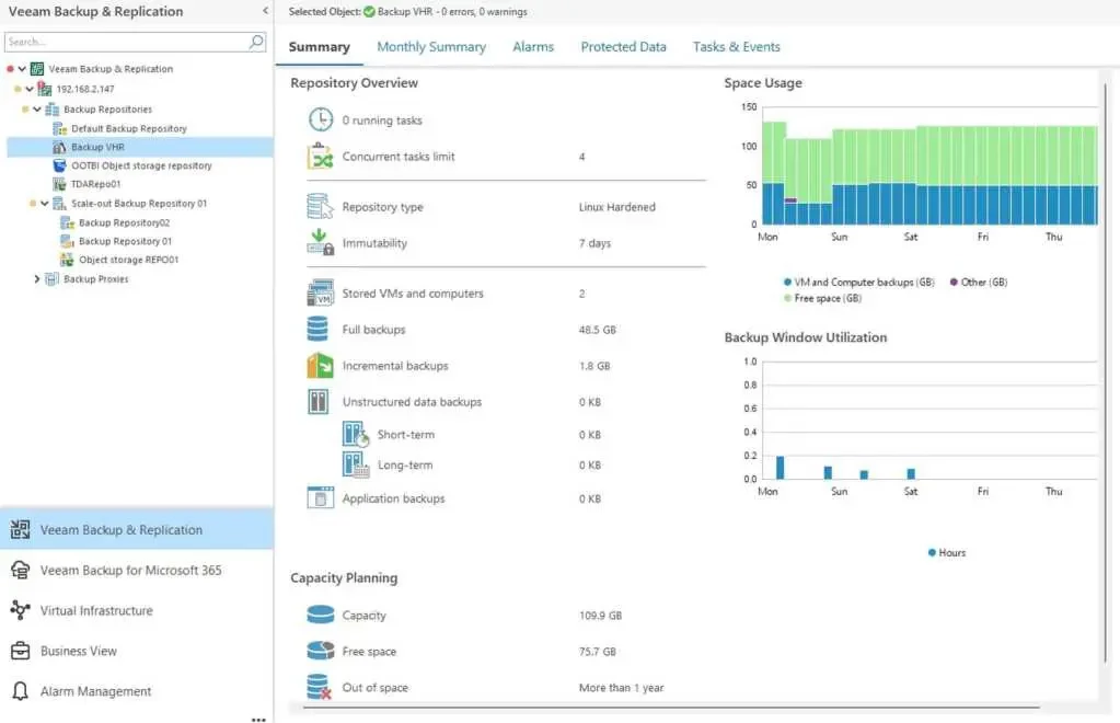 As you can we have our historical data, and reports present via the Veeam ONE Client. Veeam ONE Client is the primary tool used for monitoring the virtual environment, Veeam Backup & Replication and Veeam Backup for Microsoft 365 infrastructures