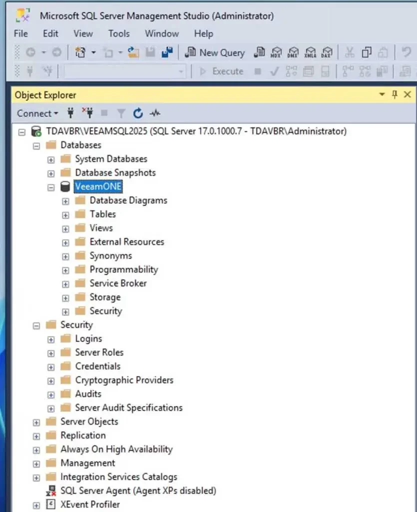 Confirm your Veeam ONE version and check its supported SQL versions in the Veeam ONE User Guide; recent versions support SQL Server 2017, 2019, and 2022. Please, keep an eyes on this page for the support of SQL Server 2025.