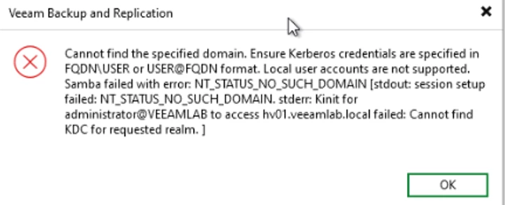 Error 2 when using incorrect format. “Cannot find the specified domain”