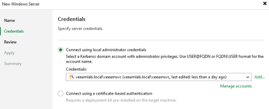 Using Veeam to add windows veeam component into Veeam Software Appliance (VSA)