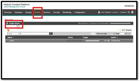 İlk adım olarak, HCP arayüzünde “Tenants” bölümüne geçerek, yeni bir tenant oluşturmak üzere “Create Tenant” seçeneğini kullanıyoruz.