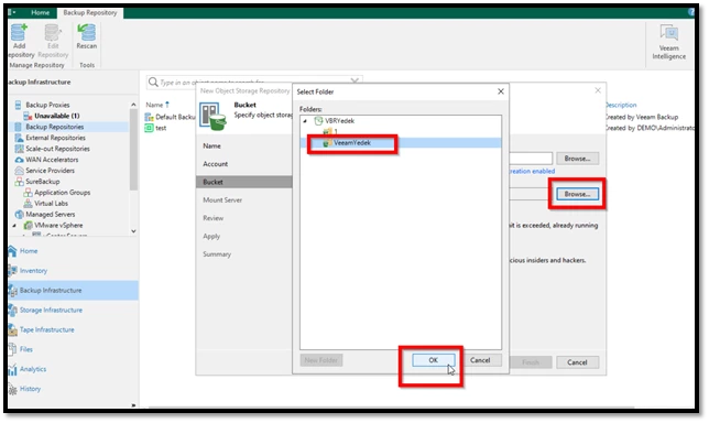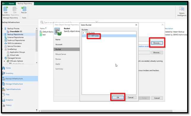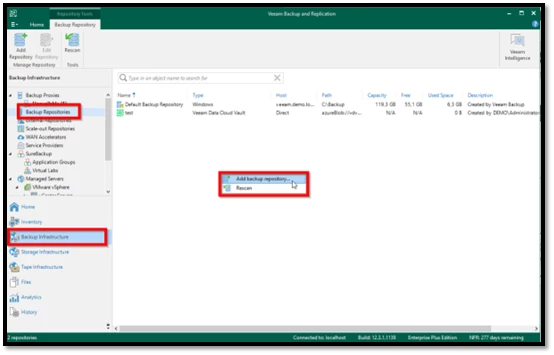 - Backup Infrastructure > Backup Repositories menüsüne gidilir.