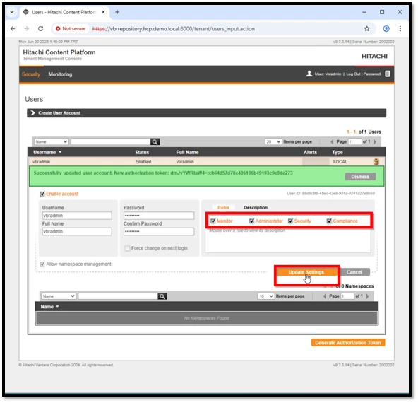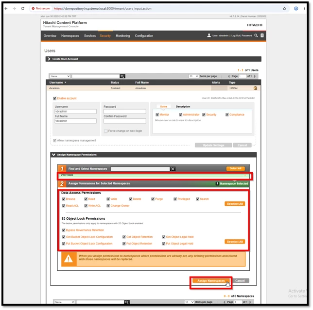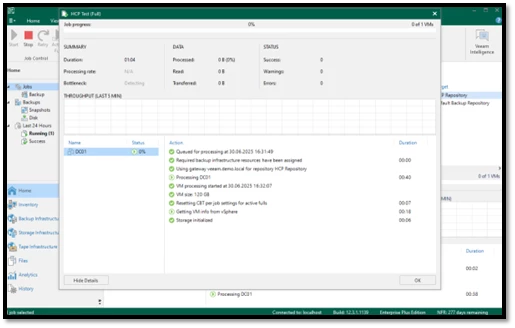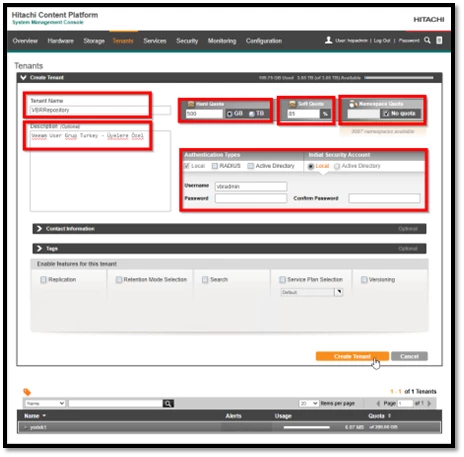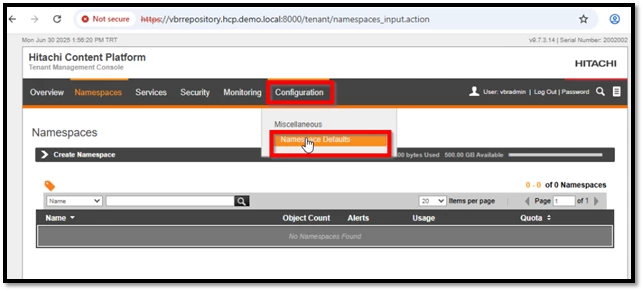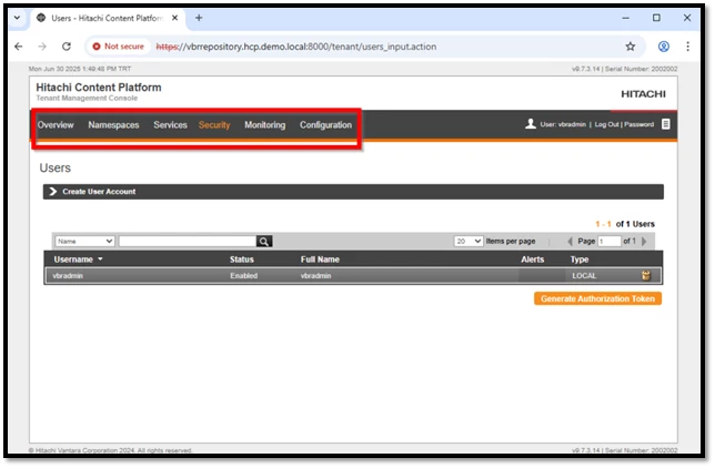 Hitachi Vantara HCP tarafındaki yapılandırma işlemlerimiz başarıyla tamamlanmıştır. Veeam Backup & Replication (VBR) ise halihazırda kurulmuş durumdadır. Artık Veeam ile HCP entegrasyonunu tamamlayarak, yedekleme (backup) ve geri yükleme (restore) süreçlerini etkin şekilde yönetebiliriz.