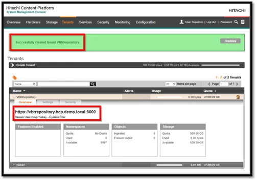 Öncelikle, Hitachi Vantara HCP demo ortamı için kurulum sürecini tamamladım. İhtiyaç olması durumunda, kurulum veya yapılandırma konusunda memnuniyetle destek olabilirim.
