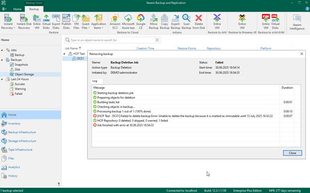 Bu doğrultuda, HCP tarafında minimum müdahale ile Veeam'in immutability (değiştirilemez yedekleme) özelliği ve saklama süreleri aktif şekilde çalışabilir. Özellikle uyumlu bir yapı kurulabilmesi için, namespace üzerinde herhangi bir ön tanımlı retention sınırlaması uygulanmamalıdır.