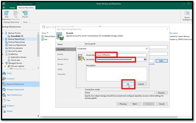 Bu iki anahtar, Veeam konsolundaki Credential kısmına doğru şekilde girilerek bağlantı güvenliği sağlanır.