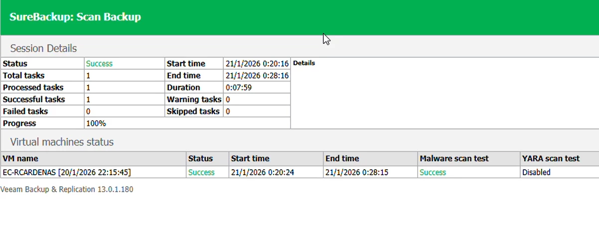 V12.3 nos dio visibilidad sobre malware en los backups.